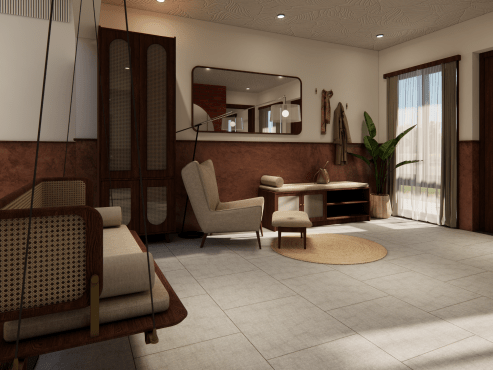 A charming 2,300 sq. ft. farmhouse currently under development in Tamil Nadu, designed for relaxation and lifestyle living. Estimated cost ₹85.5 lakhs.